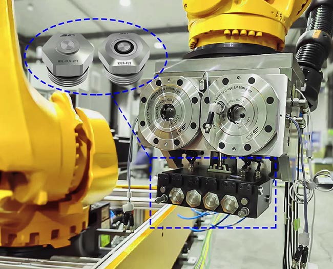 تأثير الجمع: تتم عملية الاستبدال بأكملها تلقائيًا. تحتاج الروبوتات أو المحركات فقط إلى "ربط" وحدة الأداة بمحدد موقع نقطة الصفر، والذي يكمل تحديد الموقع الدقيق تلقائيًا والقفل القوي. وفي الوقت نفسه، فإن الموصلات المانعة للتسرب على كلا الجانبين تكمل عملية الإرساء بشكل تلقائي وموثوق، مما يوفر الطاقة (السوائل) وإشارات التحكم للأداة على الفور. عند قطع الاتصال، يتم عكس التسلسل، قم أولاً بفصل الموصل (مغلق بدون تسرب)، ثم قم بإلغاء قفل محدد الموقع.
